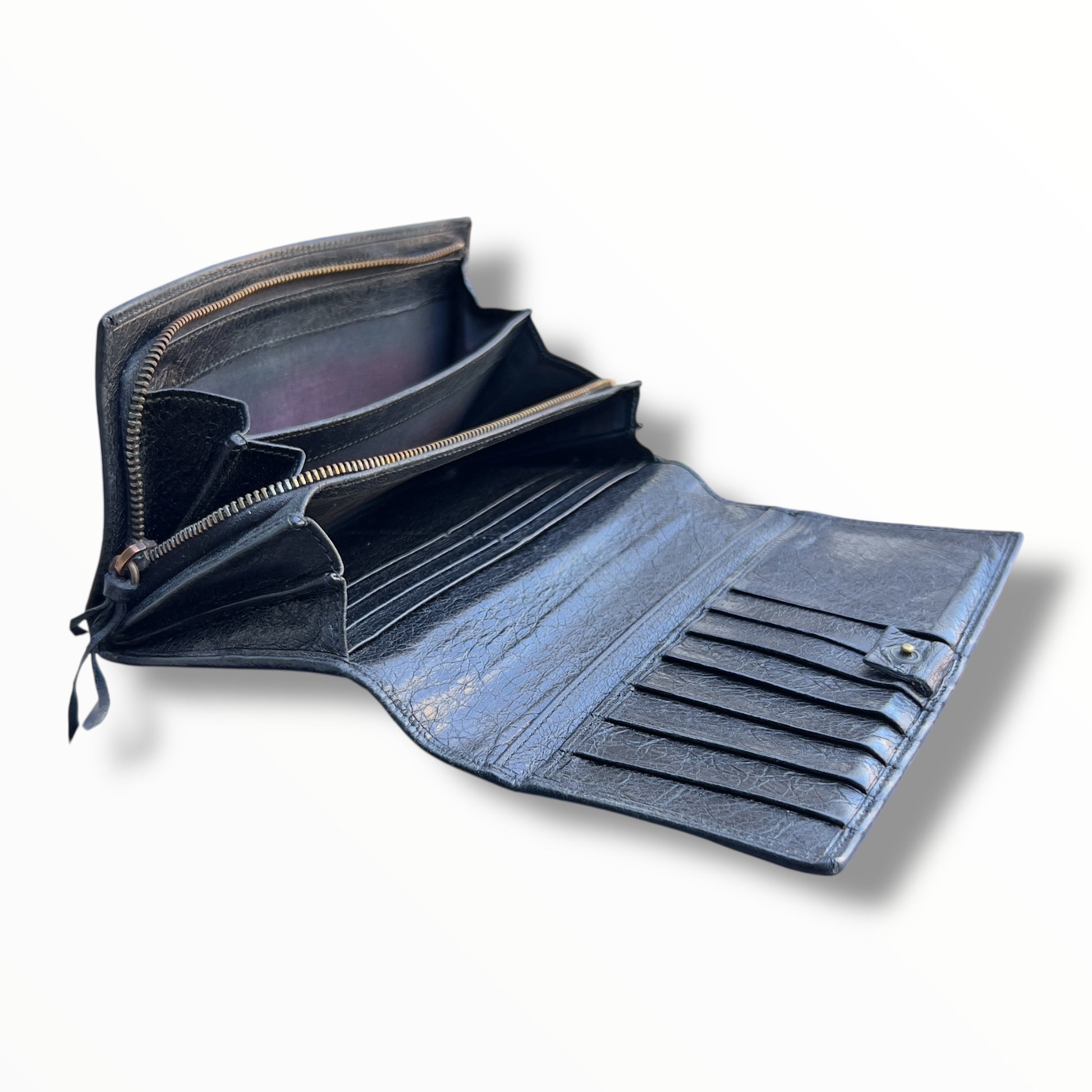 This Balenciaga Continental long wallet from the early 2000s perfectly combines style and practicality. Made from soft, durable Arena Storico lambskin, it features Balenciaga’s signature details and quality craftsmanship.