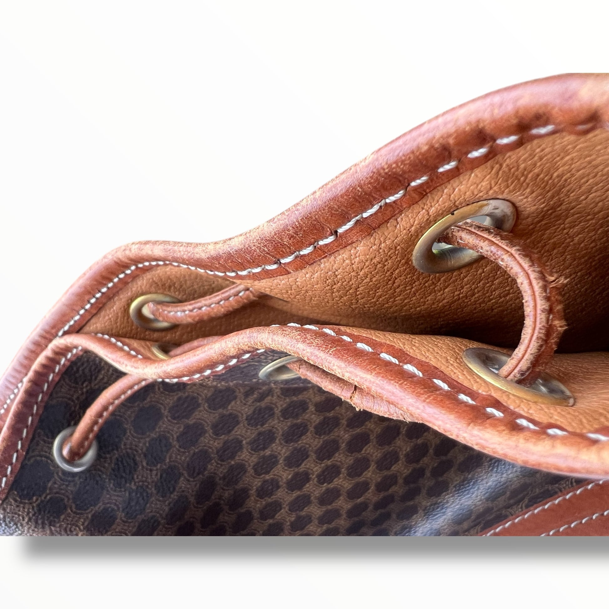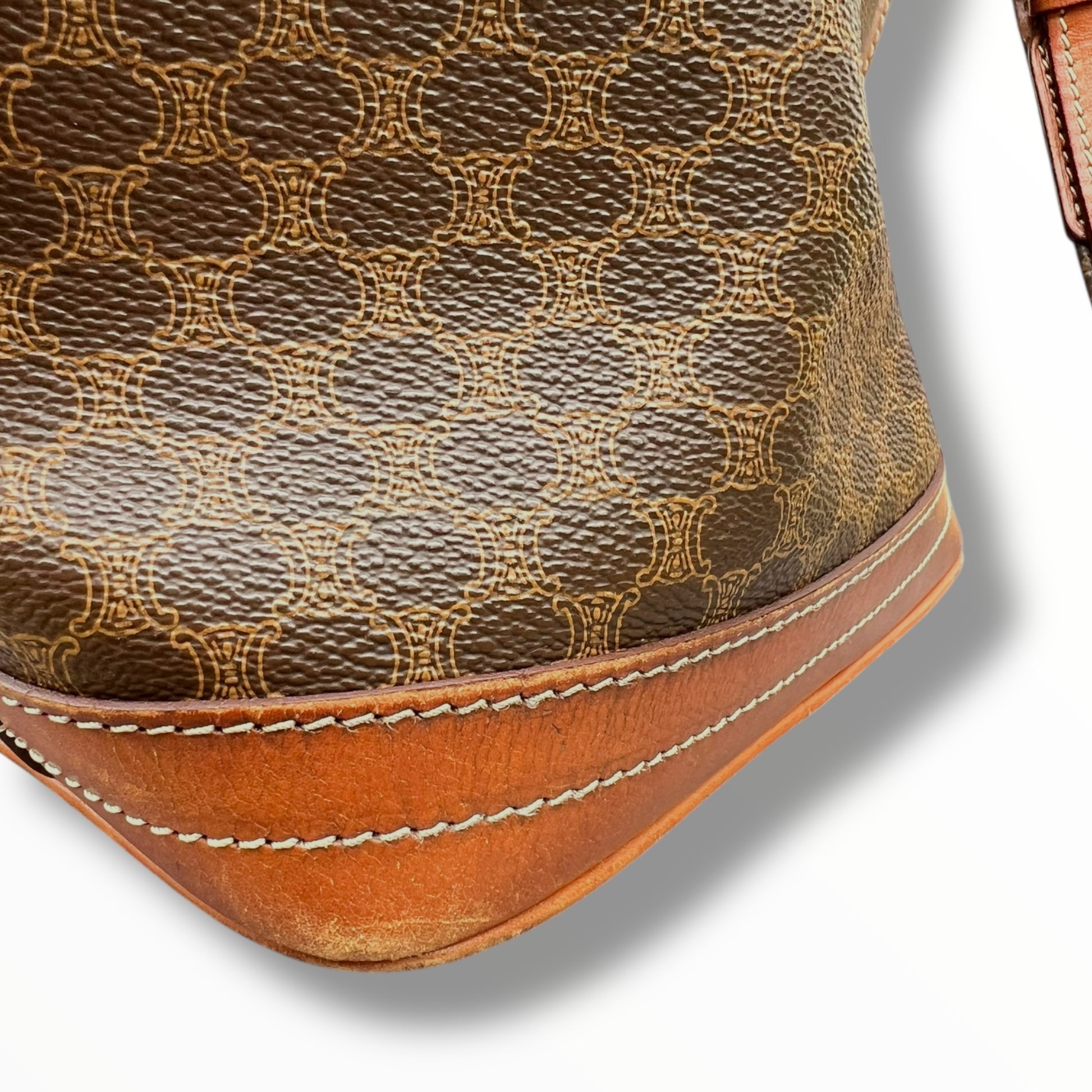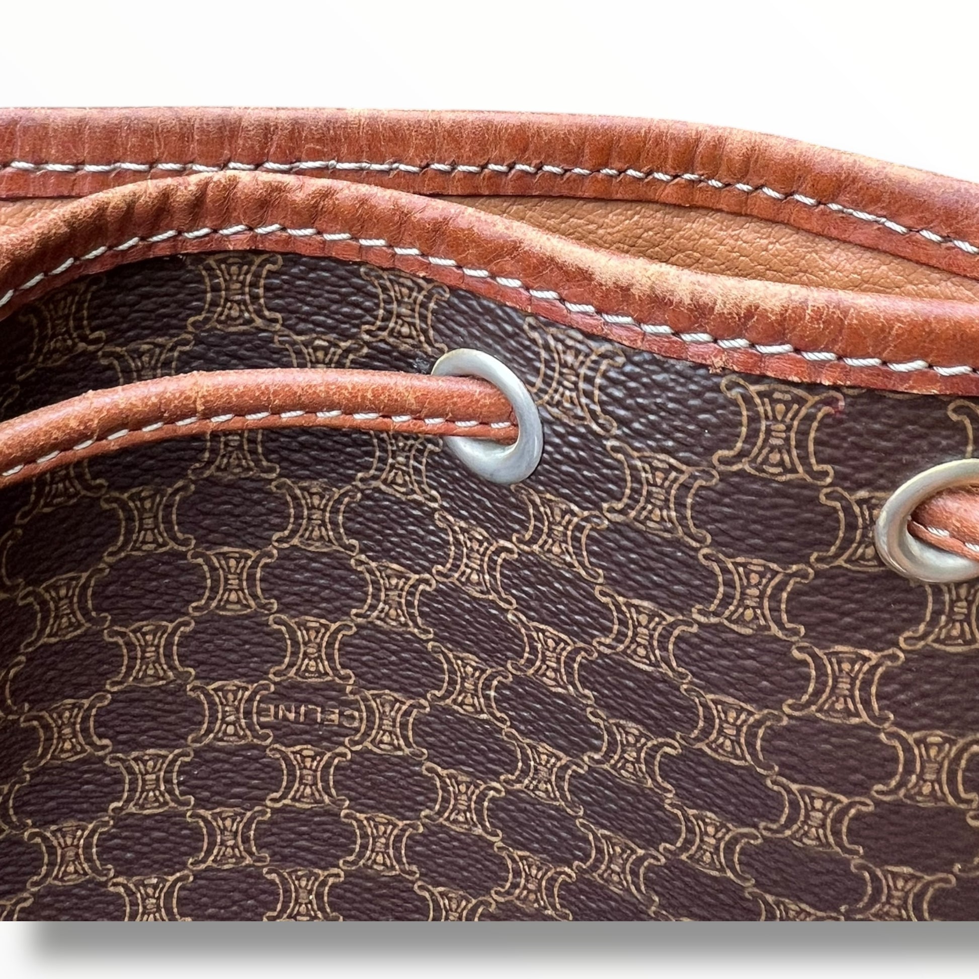 This vintage CELINE Bucket Bag is a practical and stylish piece, made in Italy from the classic brown Macadam Triomphe canvas with leather details. It has a drawstring closure and an adjustable strap, so you can wear it on the shoulder or crossbody for extra comfort.