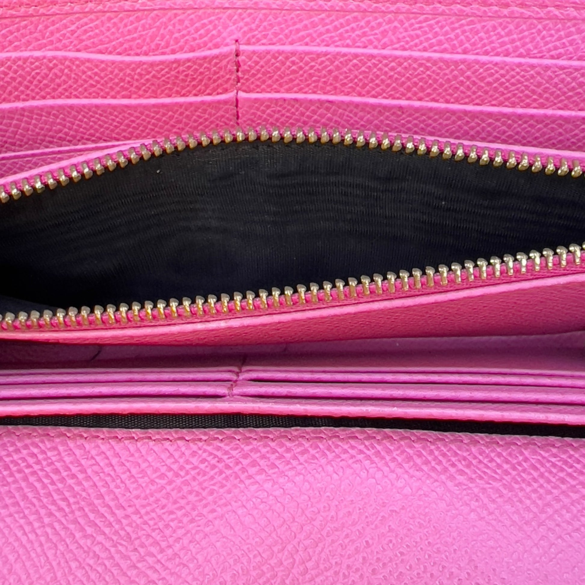 This Dolce & Gabbana wallet is bold and full of personality, featuring a leopard-print leather exterior, soft pink leather interior, and a gold-tone logo on the front flap. It’s perfect for anyone who wants an accessory that’s stylish and practical.