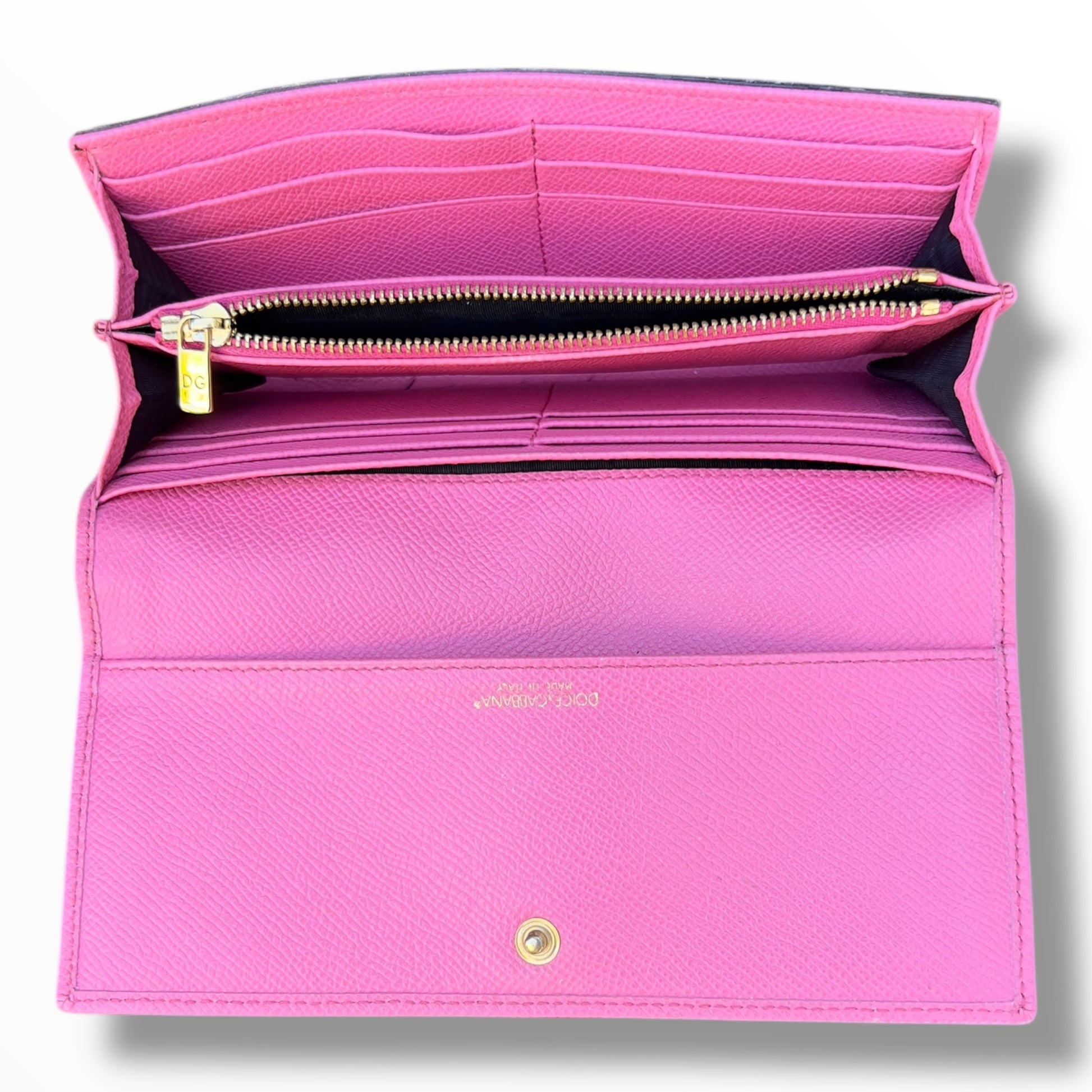 Dolce & Gabbana Long Wallet in Brown Leopard Print & Pink Leather