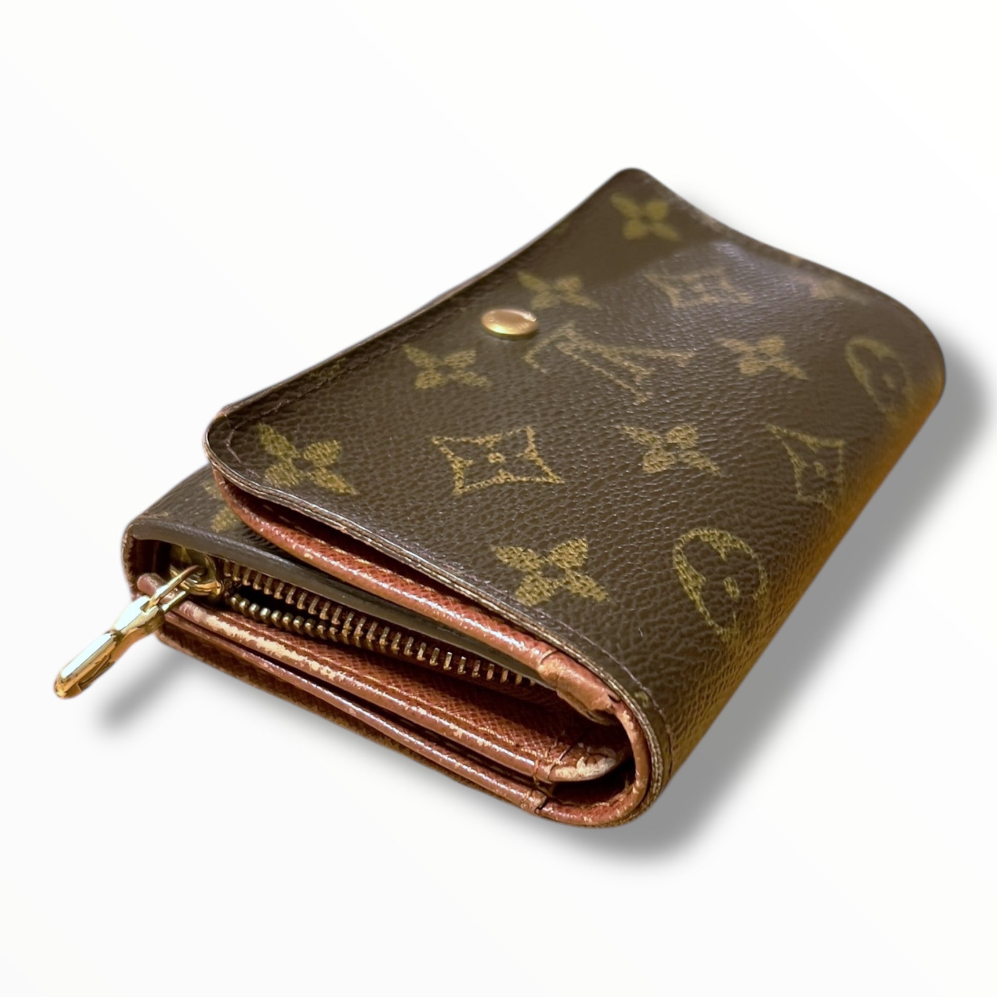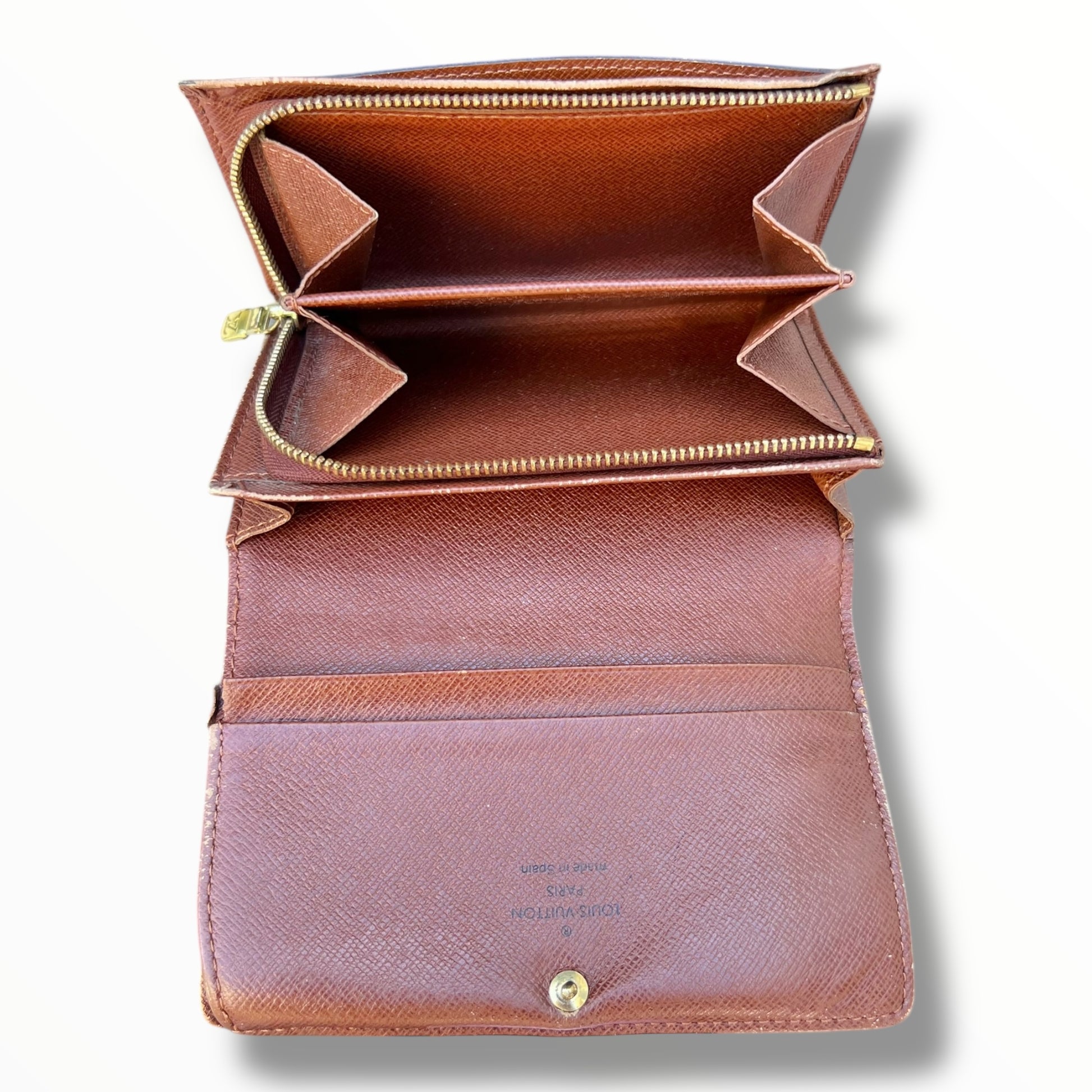 This vintage 2003 wallet has classic Louis Vuitton style, with its monogram canvas and gold-tone details. It’s discontinued, so it’s a rare find and a great addition to any collection.