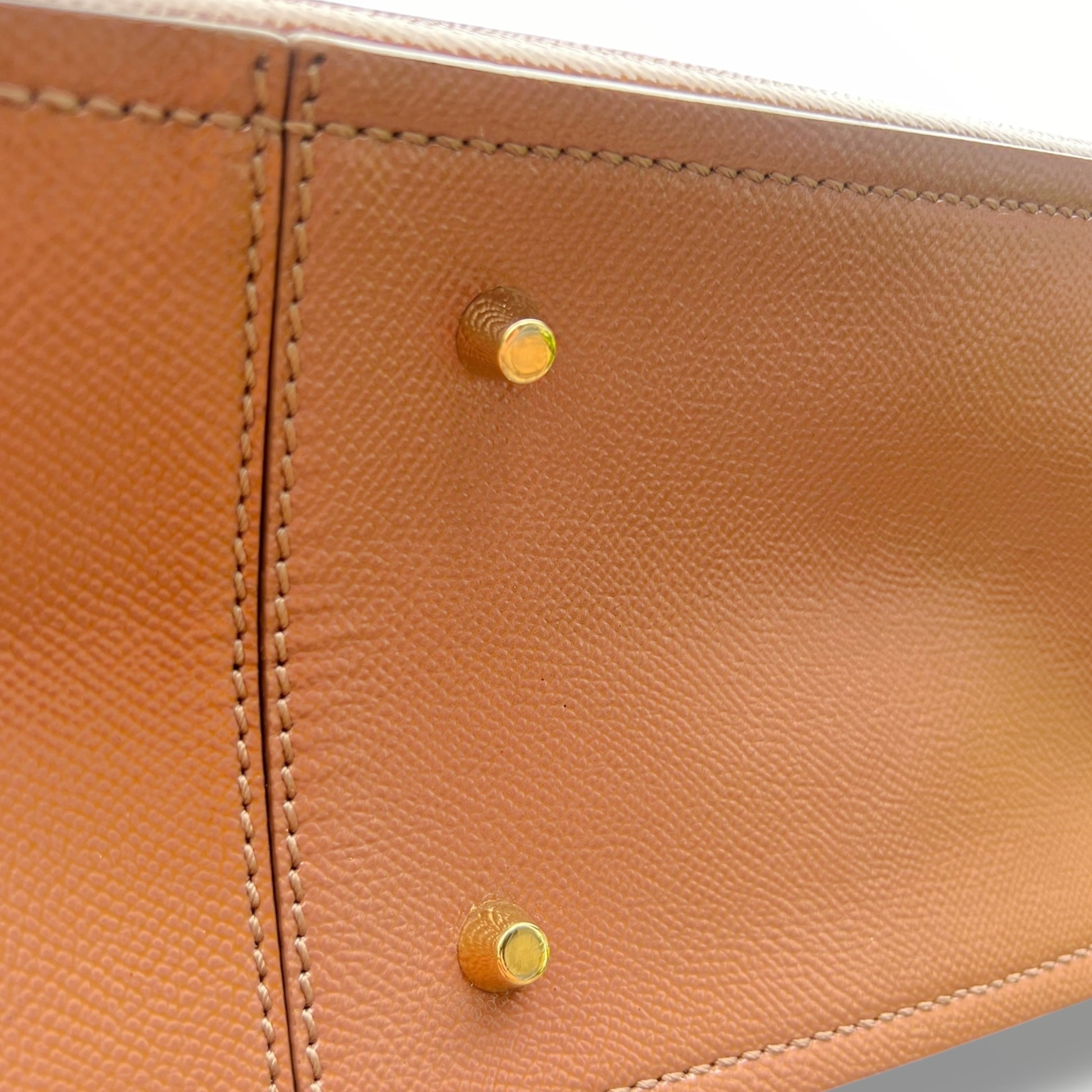 Bottom: The bag has protective metal feet with minor scratches. The Leather has minor rubs and stains.